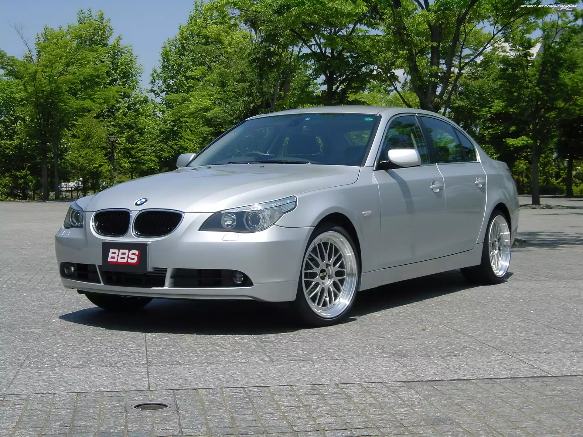 Plac, E60, Drzewa, BMW 5, Srebrny- Zdjęcia samochodów