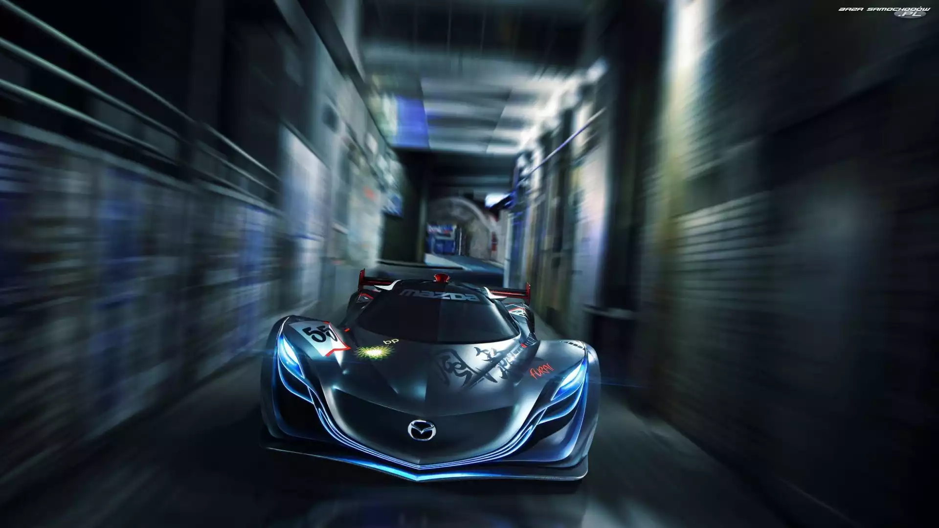 Tunel, Mazda, Furai Budynki, Mazda, Furai Mazda Furai, Wloty, Powietrza Mazda Furai, Zakręt Samochód, Prototyp, Mazda, Rajdowy Spojler, Mazda Furai Fractalius, Mazda, Furai Sport, Mazda Furai, Tor Ksenony, Tło, Mazda Furai, Szare Niebo, Mazda, Furai