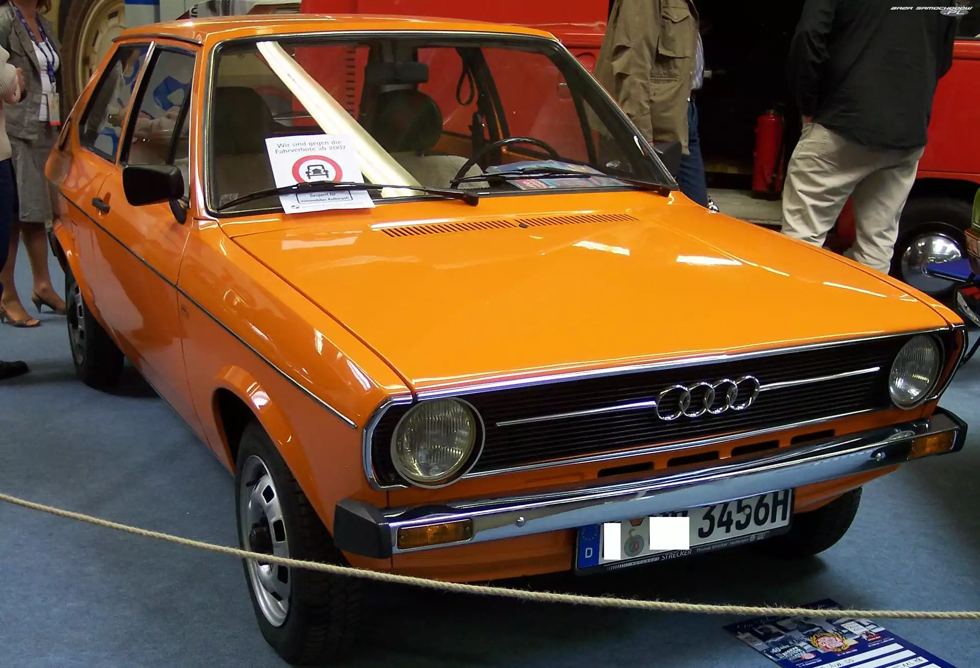 Audi 50, Chrom, Przód, Zderzak Audi 50 Drzwi, Audi 50 Hatchback, Audi 50 Wystawa, Audi 50, Salon Prezentacja, Audi 50, Wystawa Reklama, Pomarańczowe, Audi 50
