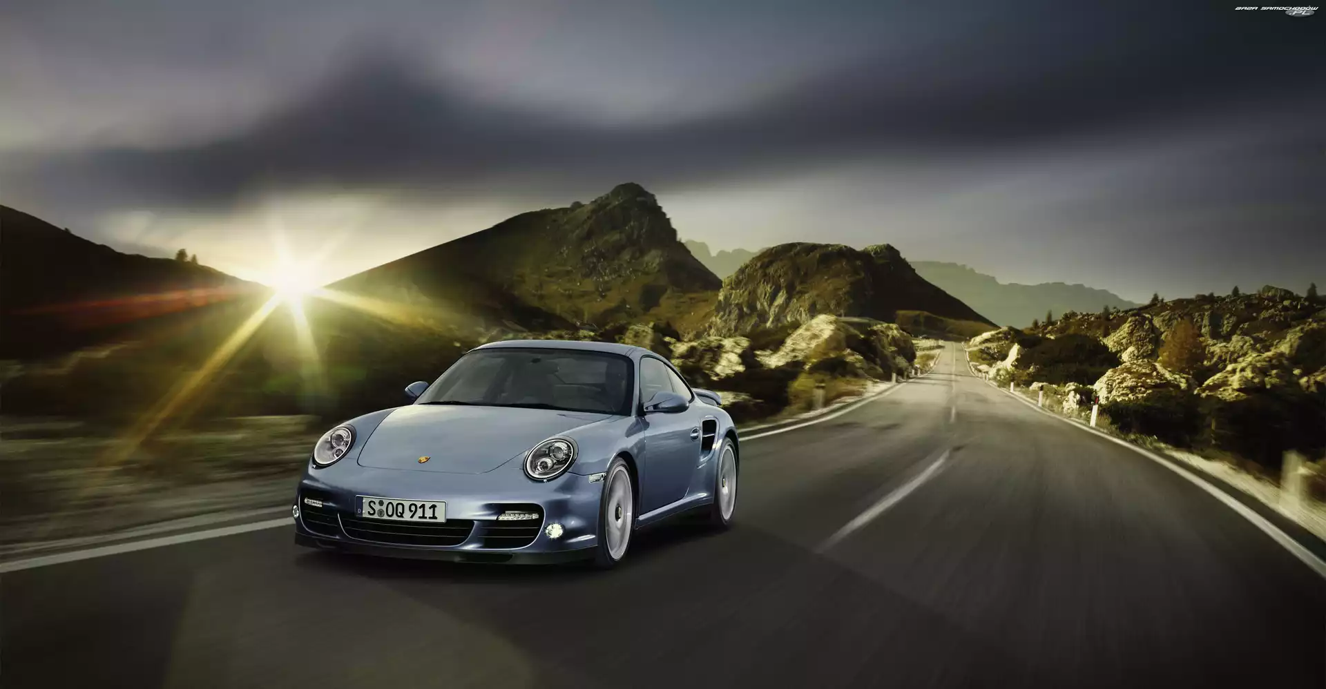 Samochód: Słońca, Turbo, Samochód, Promienie, Góry, 911, Porsche, Droga
